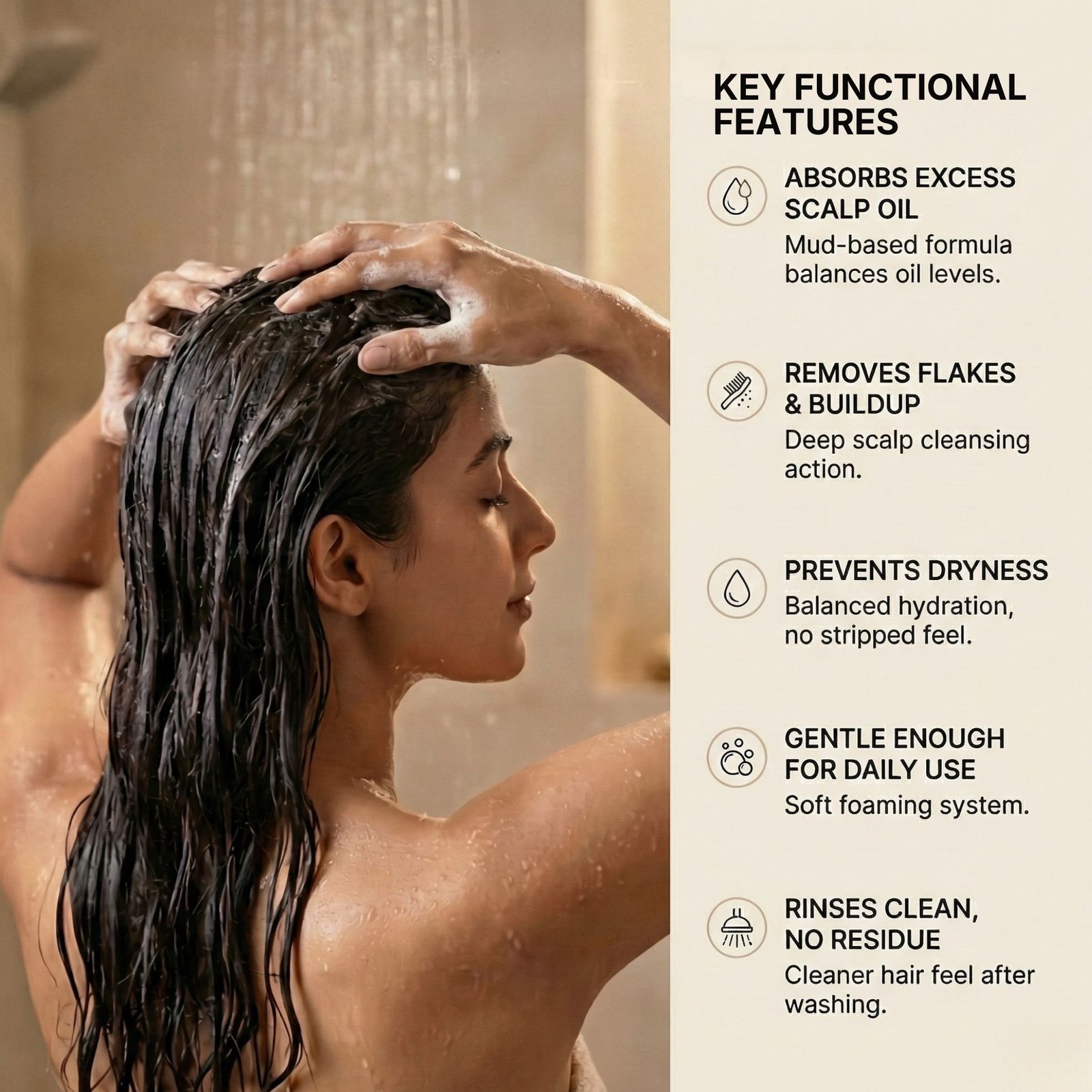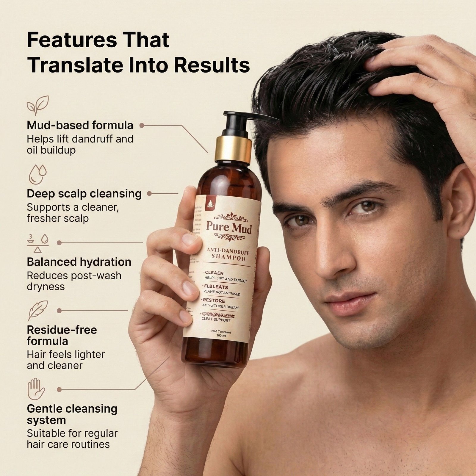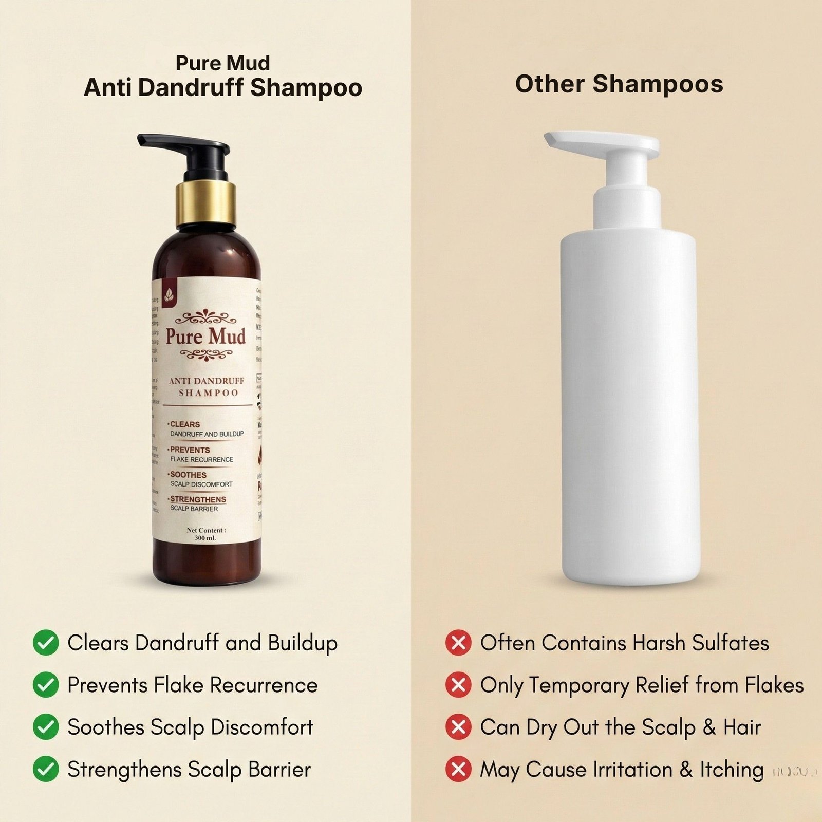 Pure Mud Anti-Dandruff Shampoo is an advanced scalp-care formula designed to gently remove