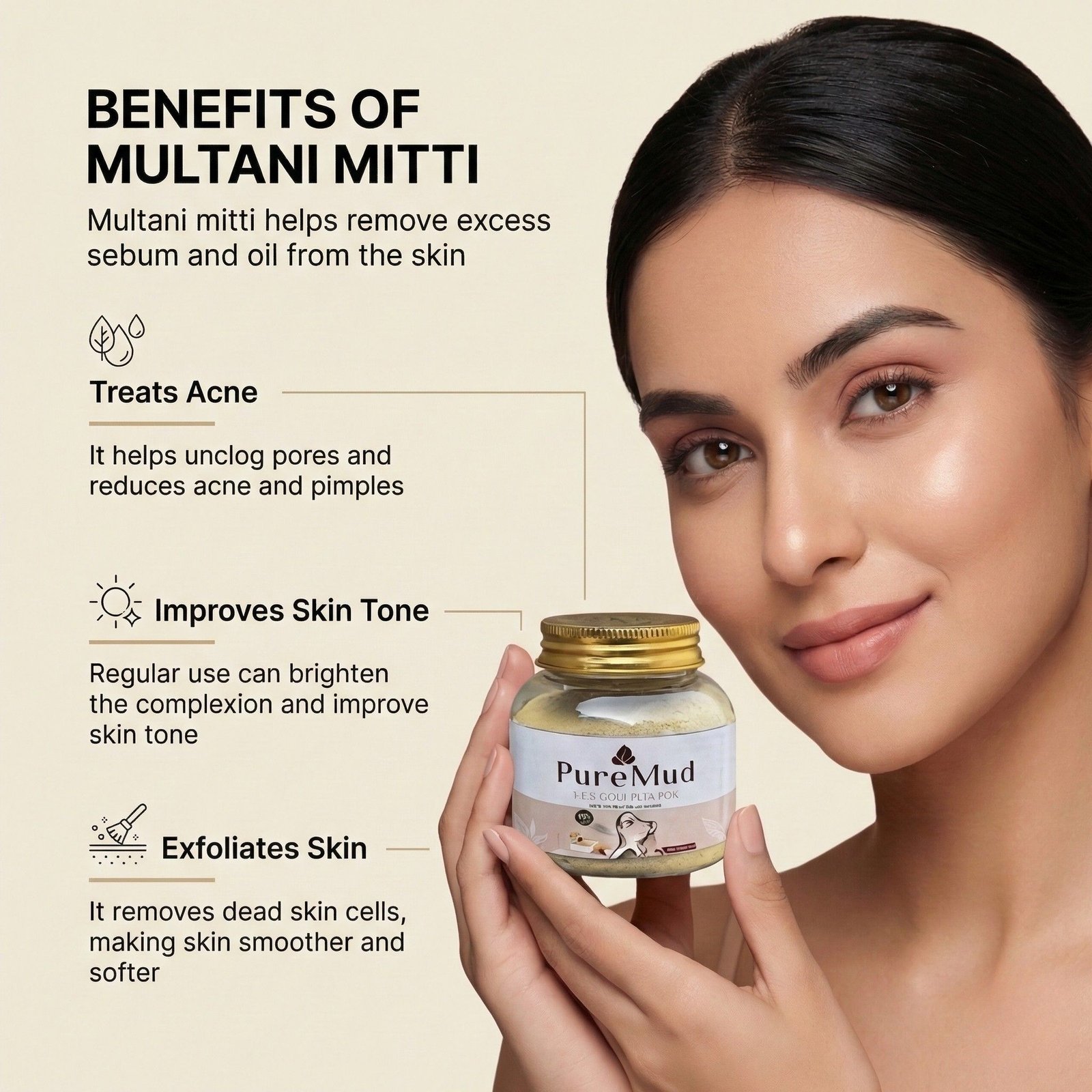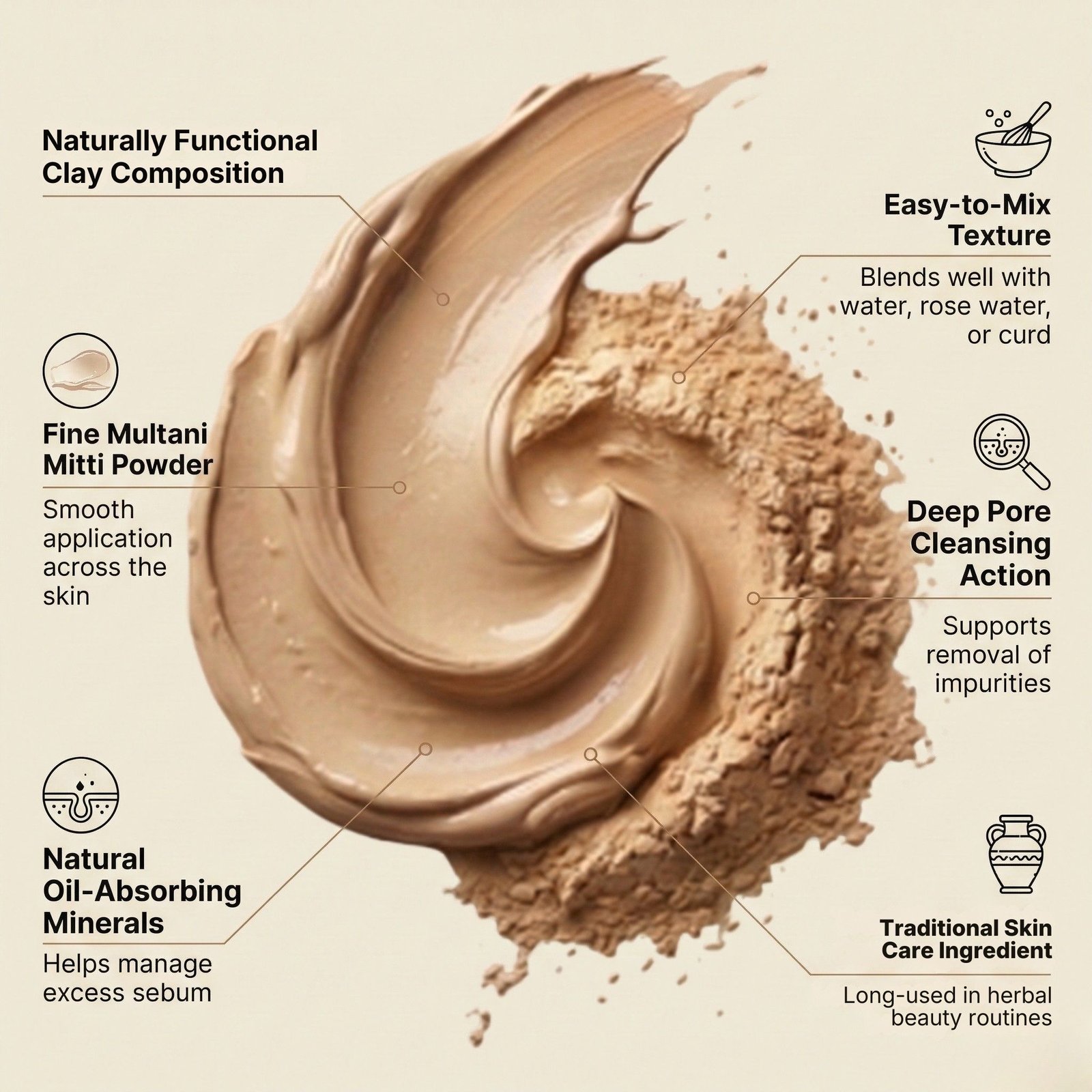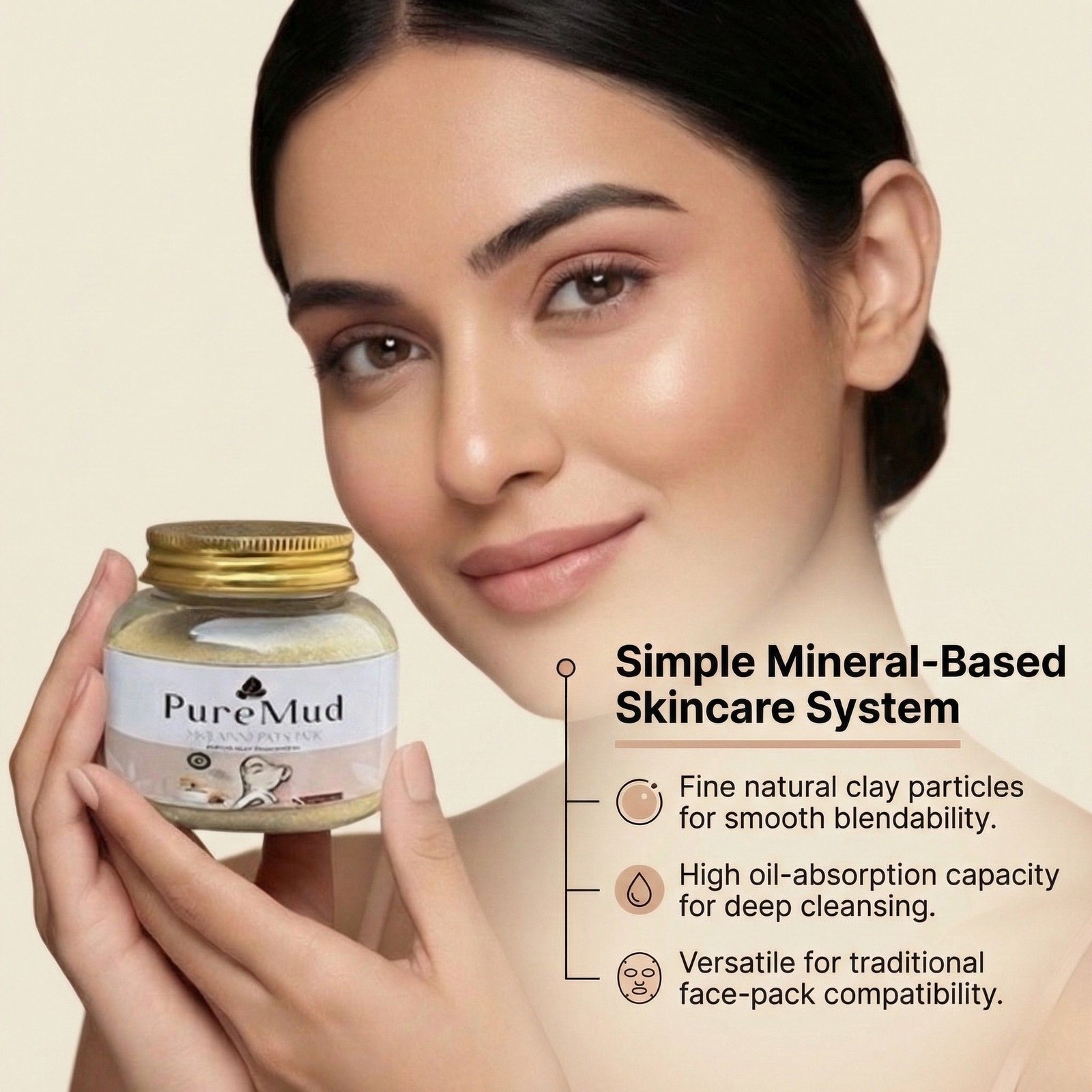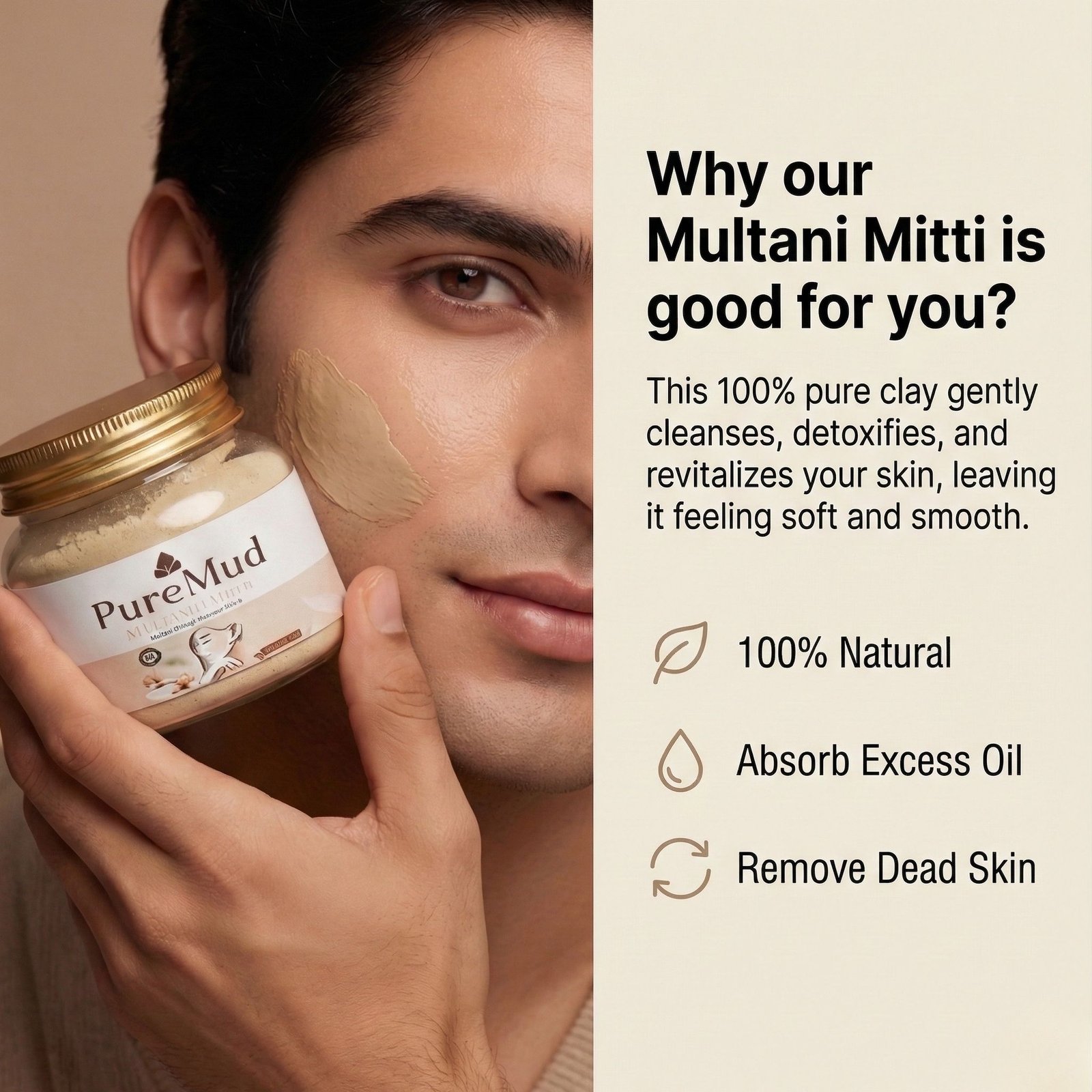 Pure Mud Multani Mitti Powder is a natural skincare solution known for its deep cleansing